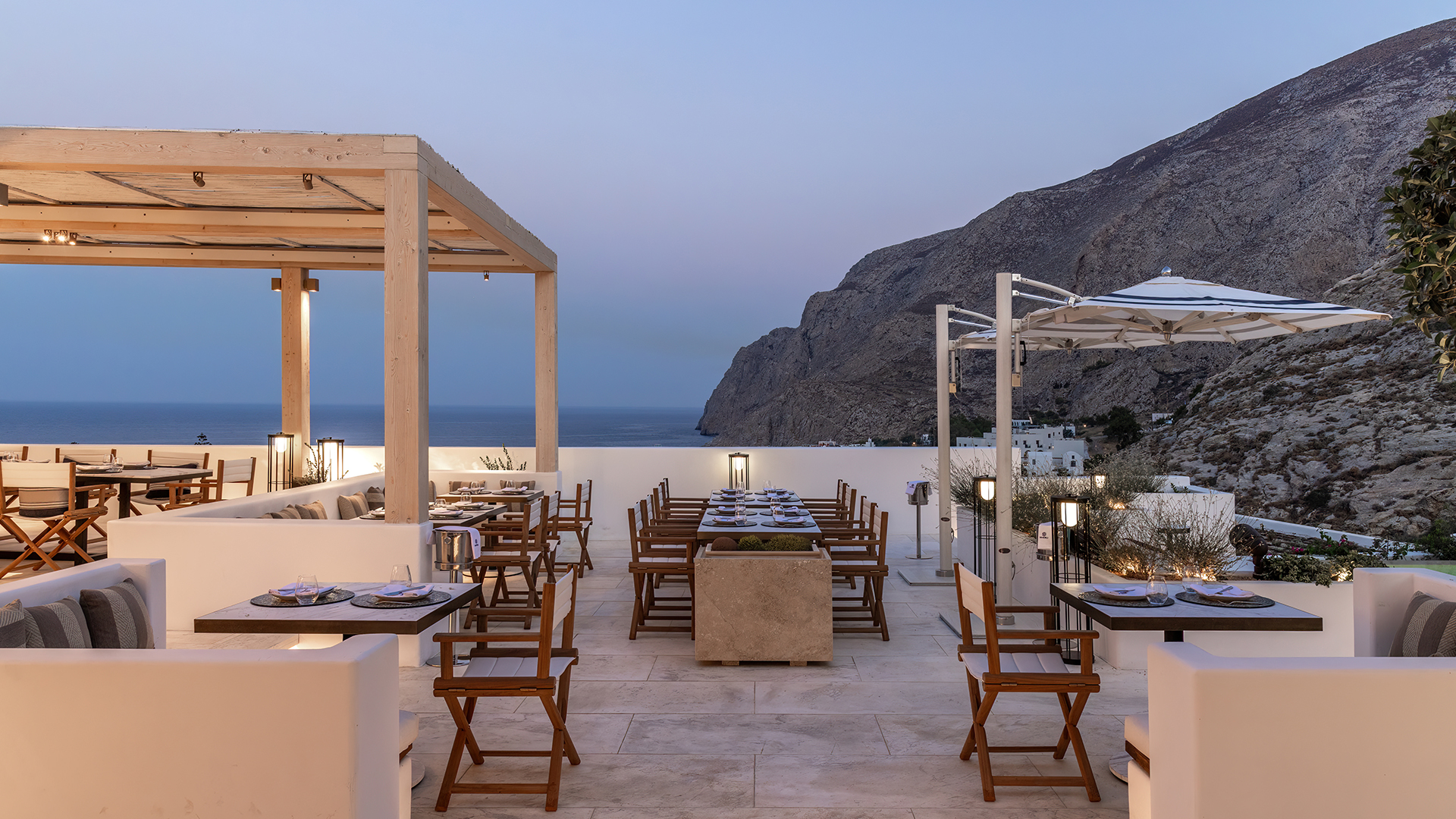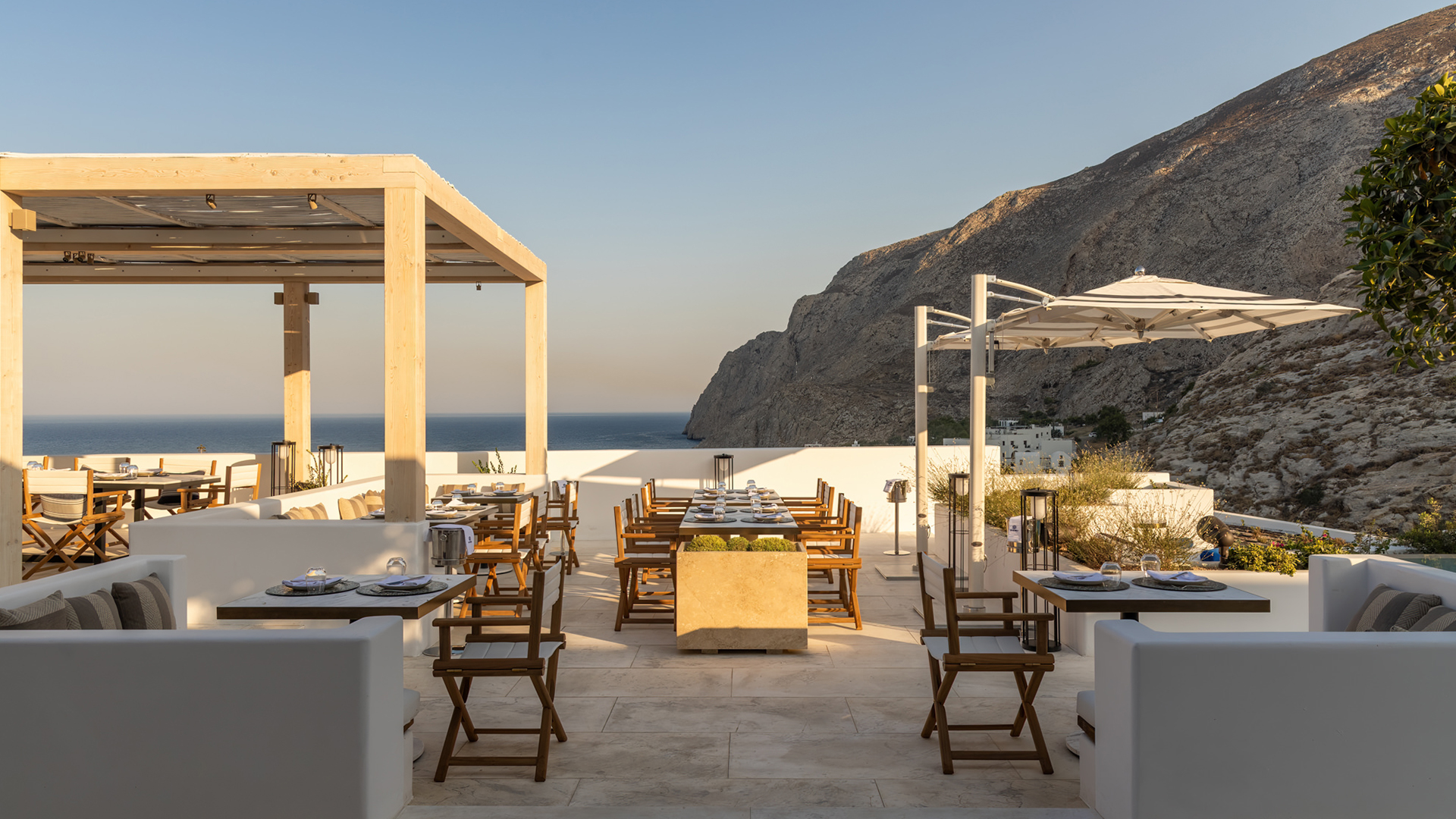 Located on the east of the island, away from the caldera crowds (yet only five miles from Fira for when you do want to join the selfie-taking masses), Sandblu is a relaxed retreat, burrowed into mountain foothills and a 10-minute walk from volcanic-black-sand Kamari beach.